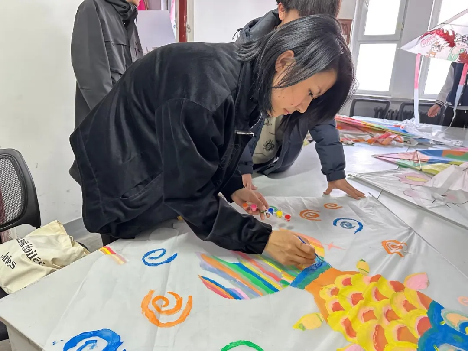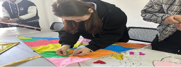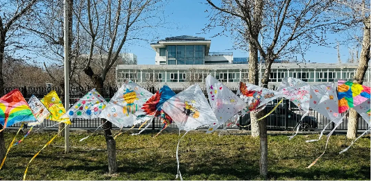 活动中,同学们不仅可以亲手绘制色彩斑斓、形态各异的风筝,还能尽情地放飞自己的作品。大家提前一周就开始了创作,每一个风筝的制作都考验着同学们的动手能力。在制作过程中,同学们全身心地投入,互相帮助,共同解决遇到的问题。挥洒的油墨与笔尖流转的灵感碰撞,将美好的愿望、天马行空的想象都绘在风筝上。