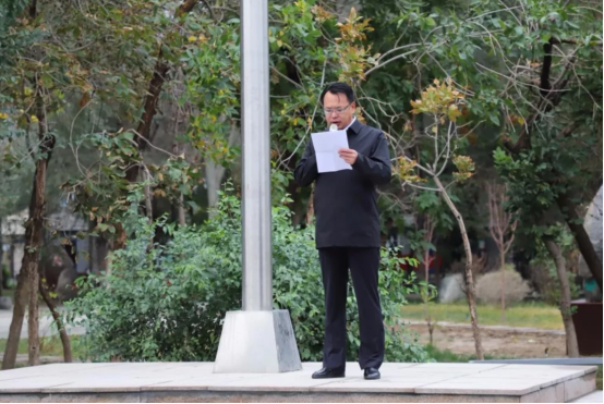 (学院副处级调研员陈为在建材校区升旗仪式上致辞)