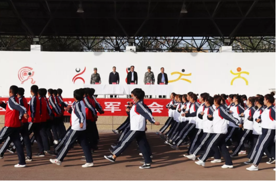 在承训部队领导的陪同下,学院党委副书记、副院长阳东升检阅学生方队。“同志们好!”“首长好!”“同志们辛苦了!”“为学院争光!”嘹亮的口号划破长空,响彻云霄。