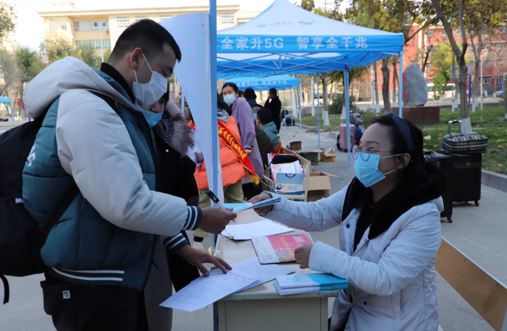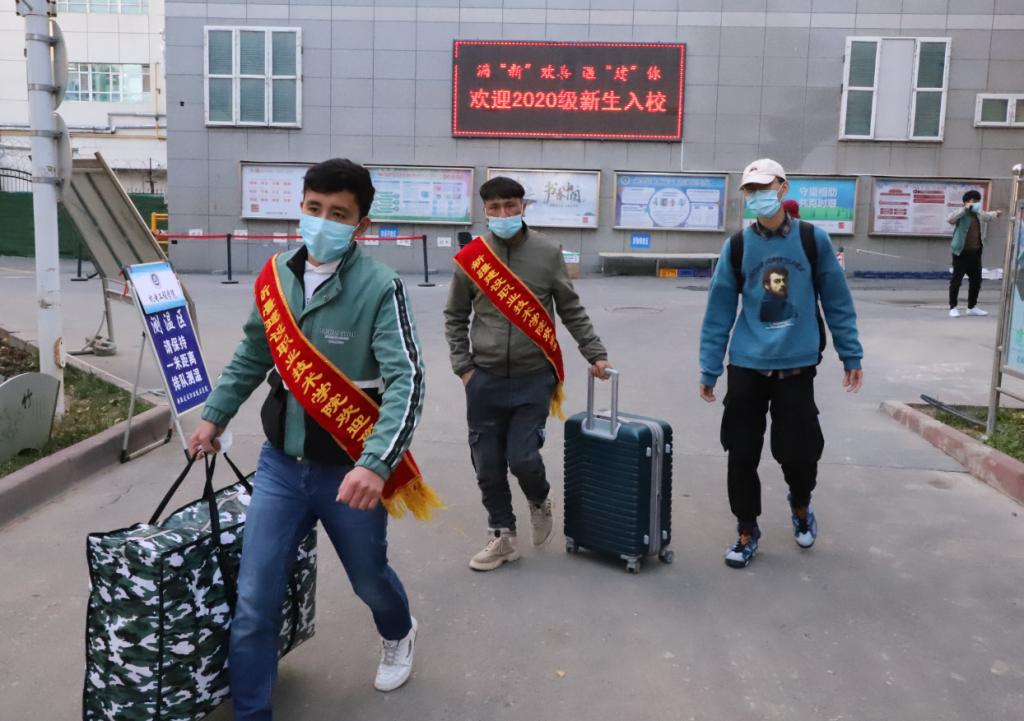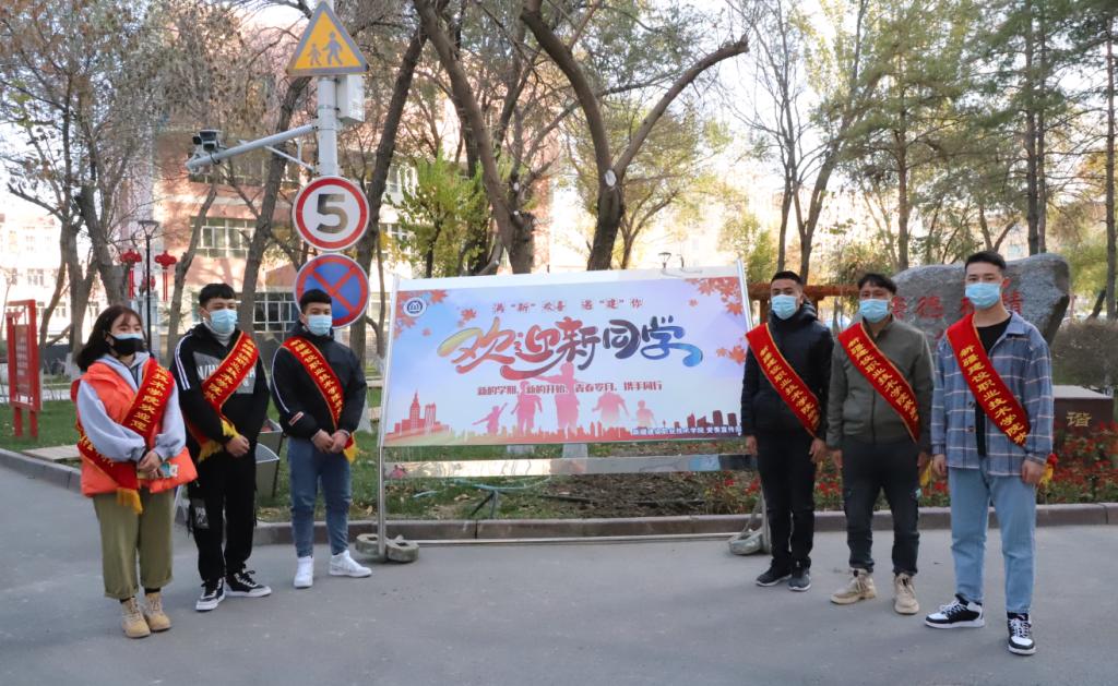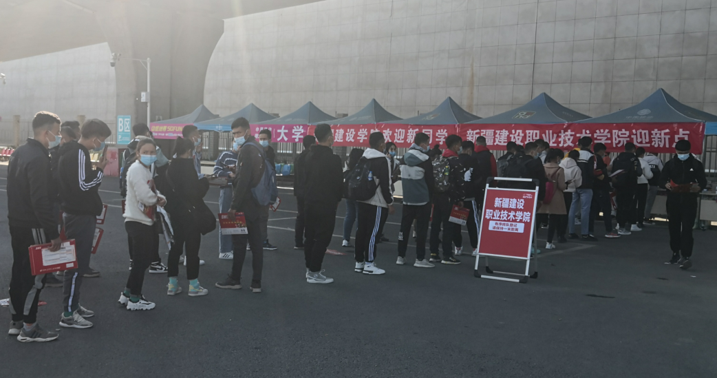 为全面做好疫情防控和迎新工作,学院安排了22名教师和18名学生志愿者在乌鲁木齐火车站、新客运张、南郊客运站接站,各二级学院都组建了学生志愿者服务队,帮助新生办理报到手续。