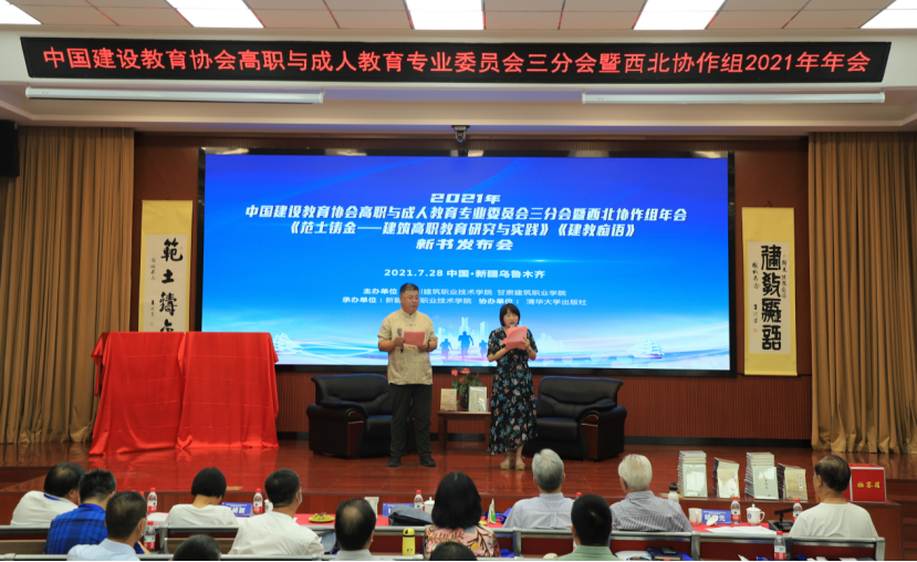 此次年会,还举行了杜国城先生《范土铸金——建筑高职教育研究与实践》《建教痴语》的新书发布会。由宁夏建设职业技术学院院长马精凭和清华大学出版社编辑室主任杜晓用朗诵的形式对新书进行宣介,并进行新书揭幕、访谈、杜国城先生签名赠书等活动。活动由四川建筑职业技术学院原副院长胡晓元主持。