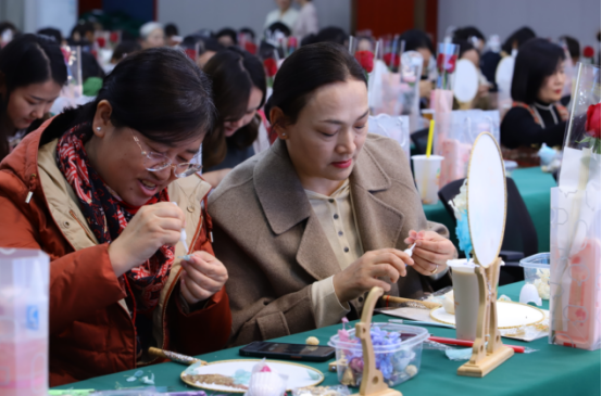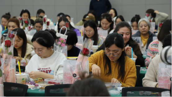 迟日江山丽,春风花草香。3月8日学院工会在建工校区教师发展中心开展“柔肩担重任,巾帼展芳华”国际劳动妇女节系列活动。活动现场,学院近二百位女性教职工聆听专业老师讲授的政务礼仪讲座,并手工制作非遗永生花团扇,以丰富文化生活,弘扬优秀传统文化,沉浸式体验了一次古典文化的魅力。