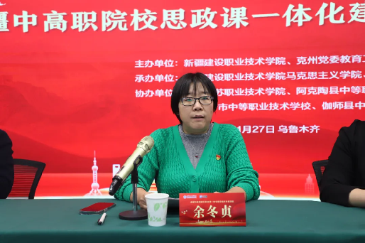 活动伊始,学院副院长余冬贞代表学院致欢迎辞。余冬贞介绍说,新beat365中文唯一官网作为自治区唯一一所公办建设类高等职业院校,已逐步形成“自力更生、自强不息、自我奋斗”的实践办学理念,为新疆乃至全国的建设事业输送了大批人才。一年多以来,在各联盟结对共建院校、单位的支持下,中高职院校思政课一体化建设相关工作取得了阶段性成果,联盟结对共建机制逐渐形成。今后,学院党委将一如既往支持思政课一体化建设活动,也希望各联盟结对共建院校、单位通力合作、聚力前行,扎实推进“大思政课”一体化建设,努力把中高职思政课一体化建设办出成效、办出水平。