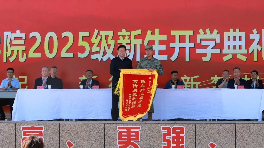 会上,学院党委委员、副院长叶尔博力·沙丁同志宣读了《关于表彰学院 2025 年军训工作先进集体和先进个人的决定》,学院领导分别为受表彰的先进集体和先进个人代表颁发了荣誉证书,并向承训部队赠送锦旗。