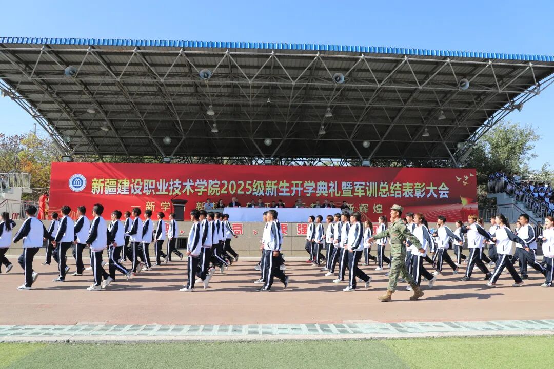 晴空万里、秋风送爽。9月29日上午,学院2025级新生开学典礼暨军训总结表彰大会在城建校区举行,参训新生英姿飒爽地展示军训成果,展现建院学子昂扬向上的精神风貌。学院党委书记蓝盛新,党委委员、纪委书记李汶革,党委委员、副院长叶尔博力·沙丁,承训部队领导及教官出席大会。大会由党委副书记秦拥军主持。
