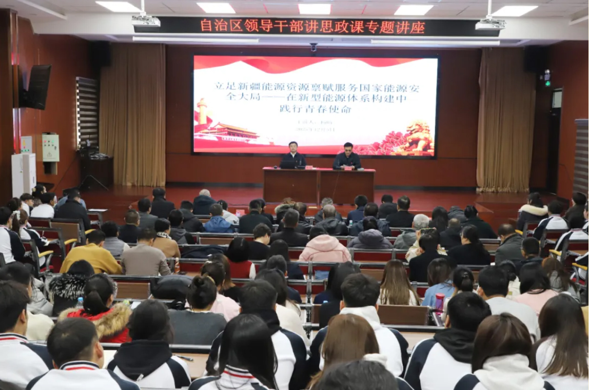 能源安全,国之大者。近日,一堂深刻而富有感召力的专题思政课在新beat365中文唯一官网开讲。自治区发展改革委党组成员,自治区能源局党组书记、局长杨旸以“立足新疆能源资源禀赋 服务国家能源安全大局”为题,为师生明晰青春责任。作为以建设类专业为核心的职业院校,这堂课更将新型能源体系构建、国家能源安全与绿色建筑、专业教学紧密相连,为学院人才培养与科研发展注入了新的方向与动力。